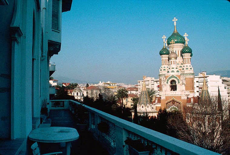 La cathédrale orthodoxe vue du balcon de la façade est.