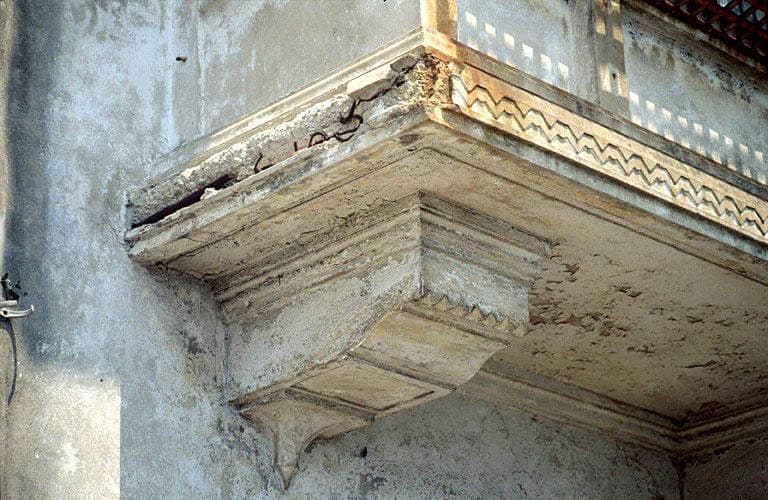 Façade sud, détail de la logette montrant les dégradations de maçonnerie.