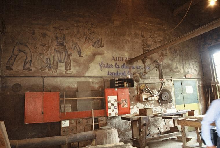 Vue générale du bâtiment de l'atelier de menuiserie à l'intérieur.