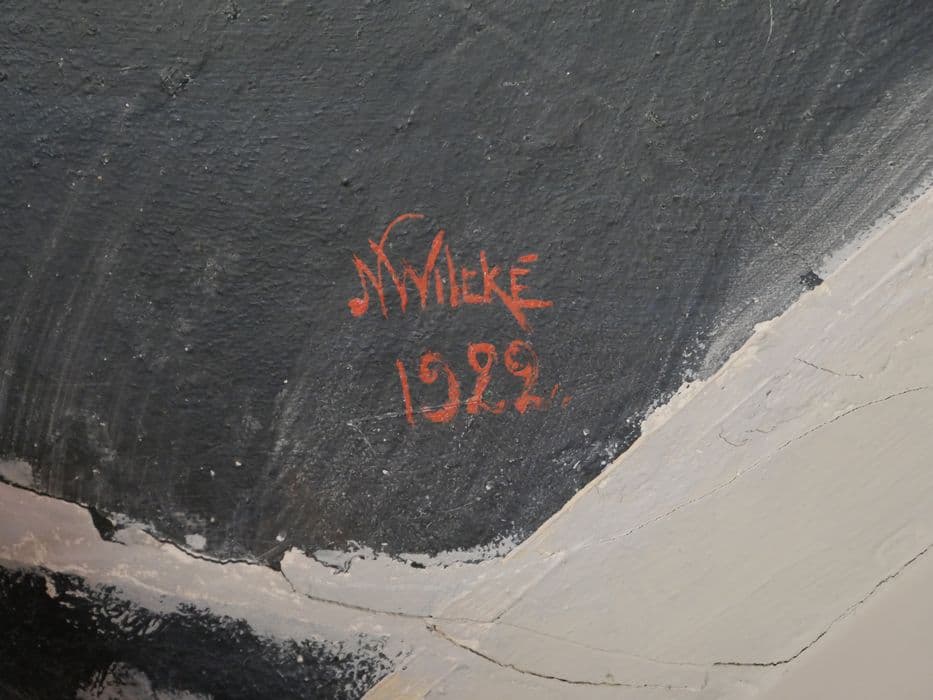 maison Peretti : 2e étage, salon, détail d’une peinture décorative, signature de l’artiste et date de réalisation