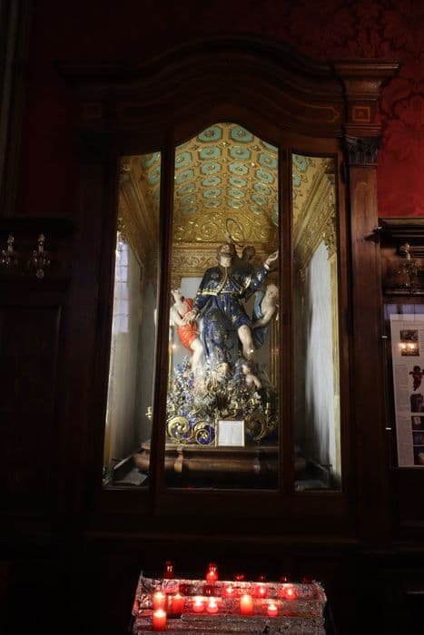 groupe sculpté de procession : Saint Roch entouré d'anges