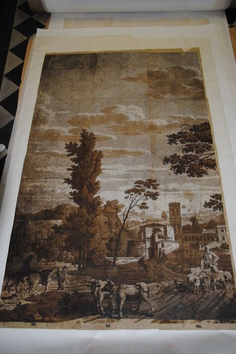 revêtement mural : Berger menant son troupeau (série des vues d'Italie), vue générale