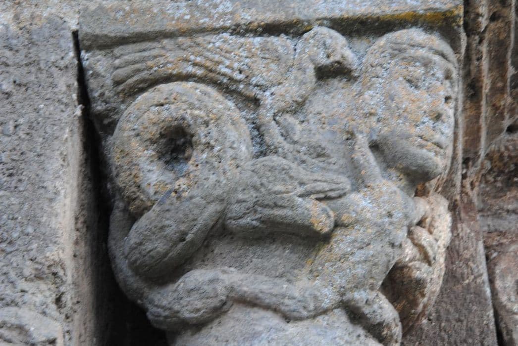 Eglise Saint-Martin : Portail occidental, détail d'un chapiteau sculpté