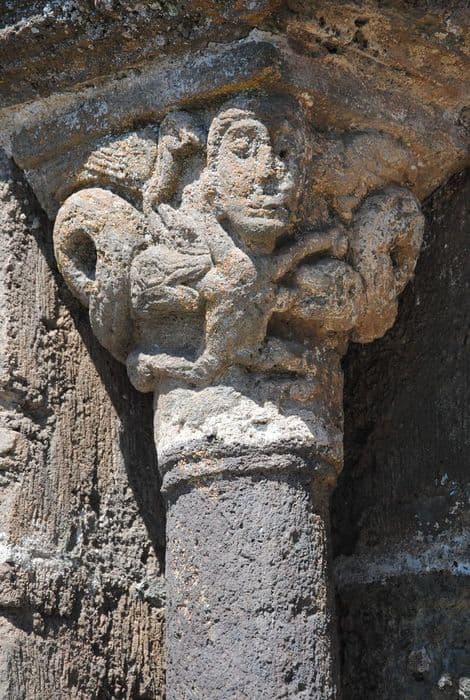 Eglise Saint-Martin : Portail occidental, détail d'un chapiteau sculpté