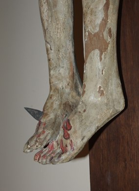 statue : Christ en croix, pieds du Christ