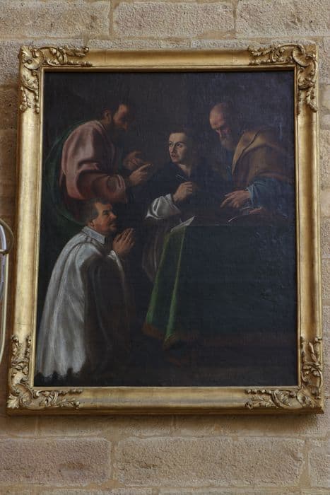 tableau : saint Thomas écrivant sous la dictée de saint Pierre et saint Paul