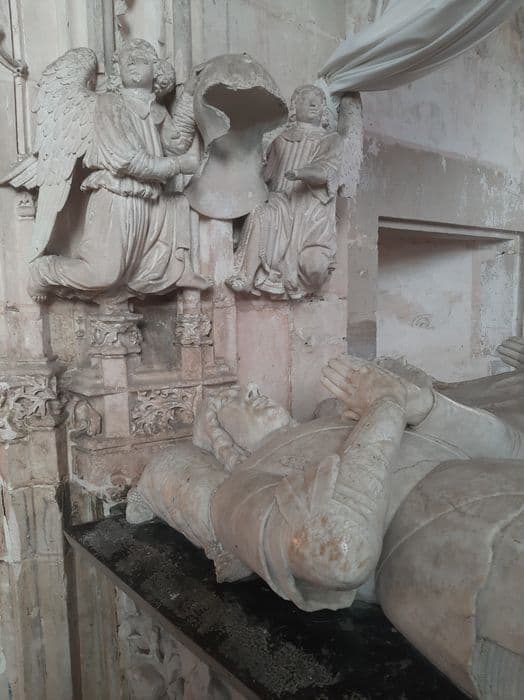 tombeau : gisants de Jean de Longvy et Jeanne de Vienne, seigneurs de Pagny, détail