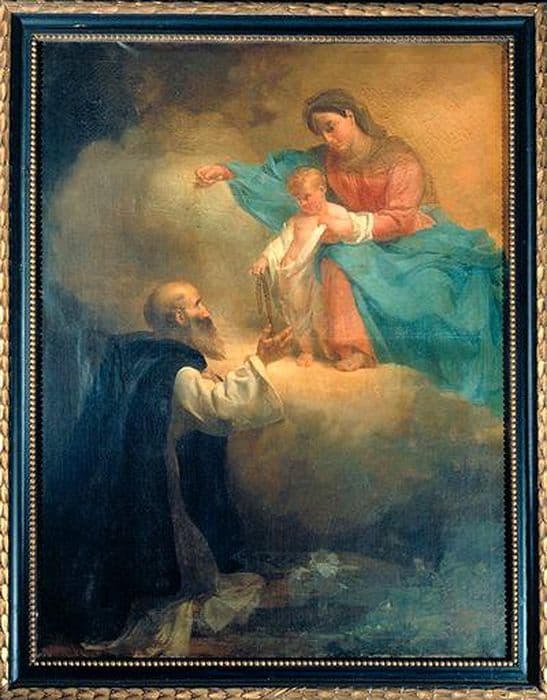 tableau et son cadre : Donation du Rosaire à saint Dominique