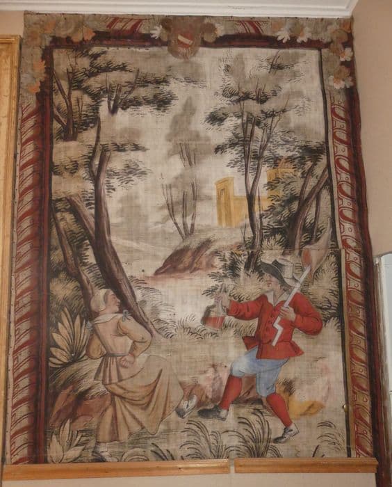 fragment de carton de tapisserie : Scène de vie paysanne