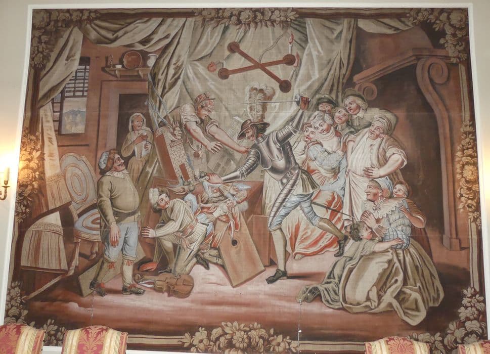 carton de tapisserie : Don Quichotte prenant des marionnettes pour des Maures croit, en les combattant, secourir deux amants fugitifs