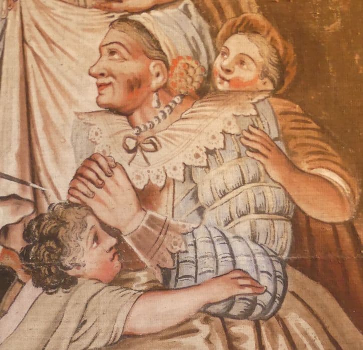 carton de tapisserie : Don Quichotte prenant des marionnettes pour des Maures croit, en les combattant, secourir deux amants fugitifs, détail