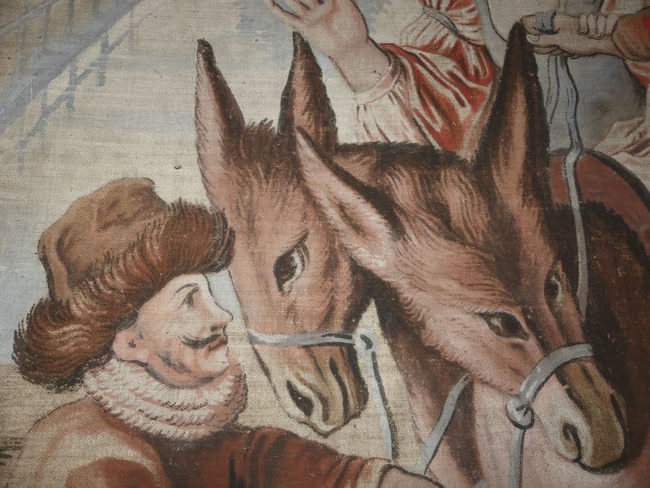 carton de tapisserie : Don Quichotte trompé par Sancho prend une paysanne pour Dulcinée, détail