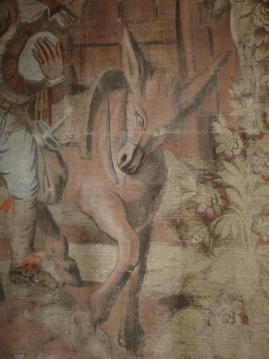fragment de carton de tapisserie : Sancho et son âne, détail