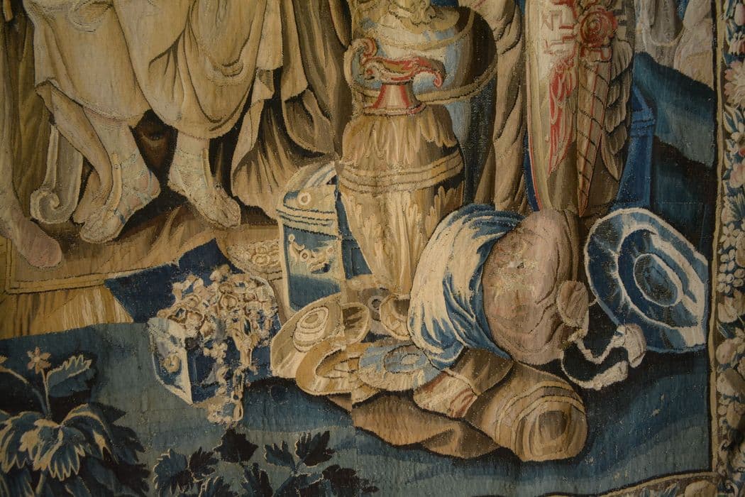 tenture d’Aubusson Scènes de l’histoire d’Achille : Briseis rendu à Achille par Agamemnon, détail