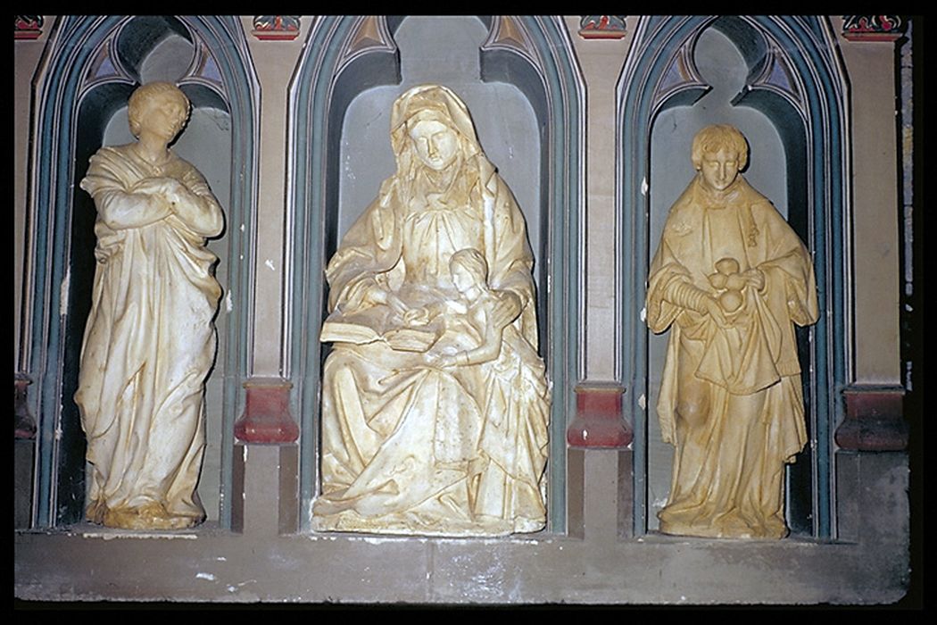 groupe sculpté : Education de la Vierge, statues : saint Etienne, sainte non identifiée