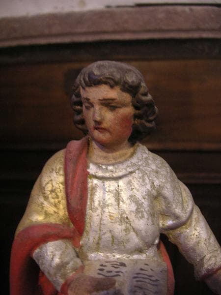 POP | Plateforme ouverte du patrimoinereliquaire surmonté d'une statuette d'un évangéliste : vue rapprochée de l'évangéliste