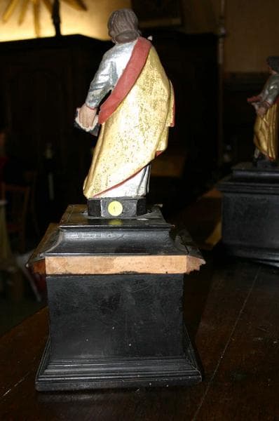 reliquaire surmonté d'une statuette d'un évangéliste : vue de dos