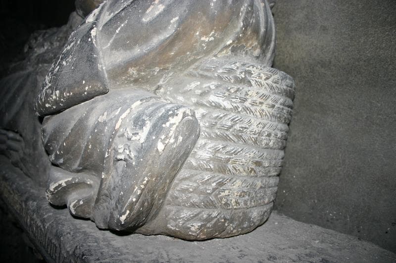 POP | Plateforme ouverte du patrimoinedalle funéraire (gisant), détail, personnage situé au pied du gisant