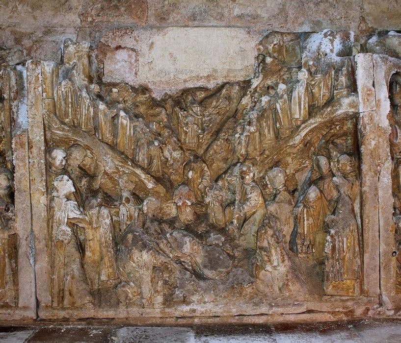 bas-reliefs : Histoire de l'invocation de saint Firmin, détail