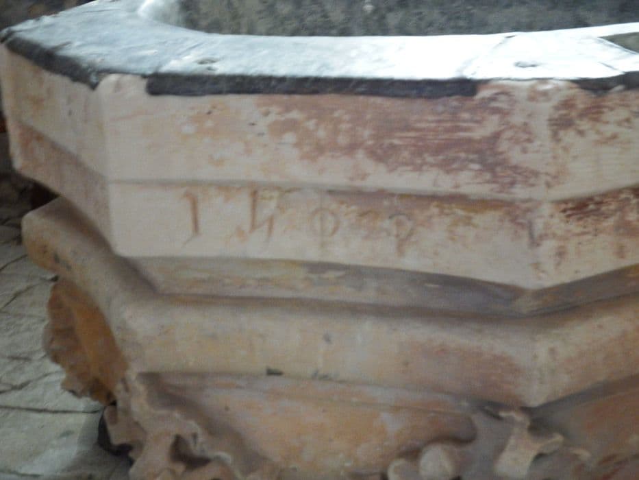 POP | Plateforme ouverte du patrimoinefonts baptismaux, détail de l’inscription