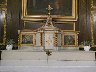 tabernacle du maître-autel ; tableaux : Saint Jean-Baptiste ; Marie-Madeleine