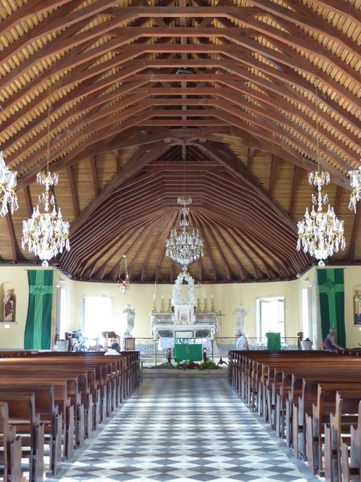 Église. Vue d’ensemble de la nef depuis l’entrée de l’église.