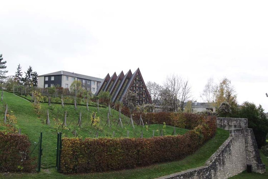 Le Centre cultuel Renée-de-France est un témoin privilégié de l’architecture religieuse des Trente Glorieuses et de la rupture radicale qui s’opère alors avec les formes traditionnelles. Alors même que les architectes apportent des réponses aux prescriptions du concile Vatican II qui modernise l’Église catholique, cet édifice nous montre que l’Église réformée de France a elle aussi la volonté de renouveler la conception de ses lieux de cultes et de les inscrire pleinement dans leur époque par l’emploi de nouveaux matériaux – ici des vitraux en polycarbonate – et par des formes et structures innovantes. Le bâtiment accueillant le temple et les salles de réunions dispose d’un plan insolite, de vastes couvertures formant les côtés de l’édifice d’une imposante verrière, traitée comme un véritable objet sculptural. On peut d’ailleurs apparenter ce travail de Jacques Lesage à l’église du Saint-Esprit de Dublin, créée par Richard T. King en 1965, qui utilise également une imbrication de volumes tétraédriques, ou, plus tardivement, à l’église Sainte-Jeanne-d’Arc de Rouen, édifiée par Louis Arretche en 1979, dont les toitures d’ardoise sont aussi l’élément structurel principal. En outre, le Centre cultuel Renée-de-France, par sa polyvalence et la multiplicité de ses espaces – salles de réunion et de réception, théâtre, bureaux, logements – manifeste le souhait de la communauté de se pourvoir d’un lieu de vie autant que d’un lieu de culte. On retrouve de fait dans cette création de Lesage, le même principe d’organisation que les églises catholiques dites à tiroirs, apparaissant à la fin des années 1960 et dotées, en plus du lieu de culte, de divers équipements et espaces destinés aux activités communautaires.