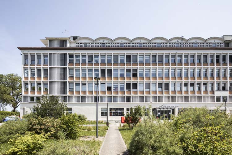 Jugée par le gouvernement français trop proche de la frontière franco-allemande, l’usine pharmaceutique alsacienne Sandoz est délocalisée à Orléans en 1939. Après la guerre, l’entreprise envisage d’agrandir ses locaux en bâtissant notamment un laboratoire pour la recherche entre 1947 et 1953. La firme fait appel à Jean Tschumi (1904-1962) qui, depuis 1946, travaille à la construction de ses laboratoires de Noisy-le-Sec. L’architecte œuvre depuis 1937 entre la Suisse d’où il est originaire, et la France, pays de sa formation. Il est sollicité de nouveau en 1961 pour agrandir les bâtiments construits quelques années auparavant.