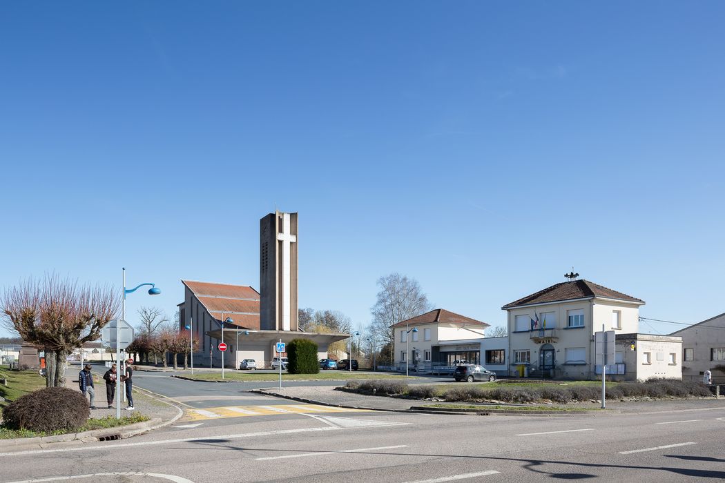 Inaugurée en 1954, l’église Saint-Laurent remplace l’ancienne église détruite dix ans plus tôt par des bombardements alliés. La construction de l’édifice s’inscrit dans un plan de reconstruction du centre du village et de ses principaux équipements (groupe scolaire, mairie, presbytère). Ce plan est conçu par Adrien Michaut, urbaniste chargé de la reconstruction du village. Le projet de la nouvelle église est confié à l’architecte nancéien Jean Bourgon, connu pour la réalisation de la cité universitaire de Montbois à Nancy.
