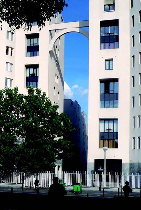 Au milieu des années 1970, la Régie Immobilière de la Ville de Paris, en collaboration avec le Plan Construction du Ministère de l'Équipement organise un concours pour la construction d'immeubles de logements sur une parcelle trapézoïdale du 13e arrondissement. L'architecte Christian de Portzamparc remporte le concours avec son projet des Hautes Formes, construit de 1975 à 1979 avec Georgia Benamo. Il restructure la parcelle par la création d'une nouvelle rue plantée d'arbres, mettant en oeuvre son principe d'îlot ouvert. Autour de celle-ci sont disposés six immeubles reliés entre eux en partie haute par des arches ou des linteaux. Construits en béton sur des hauteurs différentes permettant une meilleure exposition au soleil, ils abritent en tout 209 logements sociaux. Les architectes jouent avec les formes géométriques fragmentées ou répétées du demi-cercle et du rectangle par des découpes et creusements sur les acrotères ou des fenêtres monumentales occupant la hauteur de deux appartements. Ce travail sur le vide entre les bâtiments, redéfinissant l'espace urbain et le rapport à la rue, sera repris à plus grande échelle par Christian de Portzamparc lors de l'aménagement de la ZAC Paris Rive Gauche-Masséna. L'îlot des Hautes Formes est toutefois aujourd'hui privatisé par l'ajout d'une clôture à chaque extrémité.