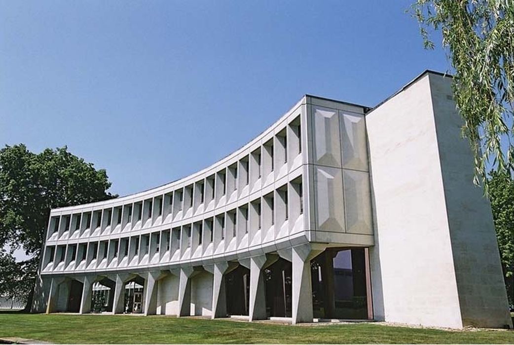 Lors de la première tranche, en 1967, sont réalisés les bureaux et l'usine de fabrication. Le même module préfabriqué en béton est utilisé pour les deux bâtiments qui présentent des variantes relatives à leur fonction. L'usine se réduit à un parallélépipède austère ne comportant qu’un étage. A l’instar de l’immeuble abritant les services du Department of housing and urban development à Washington, édifié par Breuer en 1968, le bâtiment des bureaux, qui s’élève sur deux étages, est construit sur pilotis et présente une façade concave. Au cours de la deuxième tranche en 1975, le bâtiment de l'usine est doublé vers l'ouest. L'utilisation du même module de façade que celui à l’œuvre pour les premiers bâtiments assure l'unité de l'ensemble. Cinq petits bâtiments supplémentaires, abritant notamment une centrale et la loge du concierge, complètent cette deuxième phase. Enfin, la dernière tranche en 1983, voit l'édification d'un nouveau hangar et d'un bâtiment d'expédition en métal, greffés au nord-ouest du bâtiment initial de production. au nord de celle-ci.