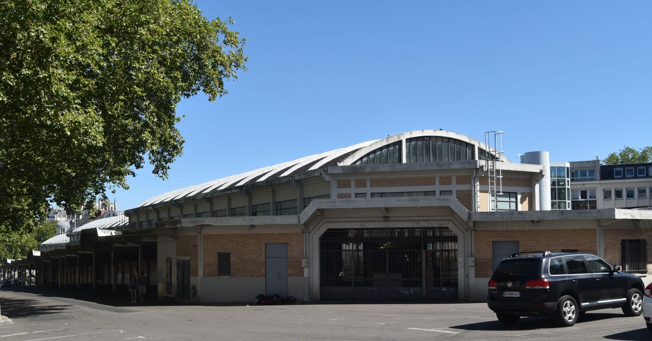 Le projet présente trois sections établies concentriquement dans l’ordre suivant : marché découvert sur le pourtour, marché couvert dans la zone intermédiaire, et marché fermé au centre avec, à l’extrémité, côté rue de Bel-Air, un épanouissement abritant la conciergerie et les services du marché. Celui-ci, couvert et clos, est abrité dans une halle centrale de 160 mètres de long par 16 mètres de large pour une superficie de 2 550 m2. Ce long vaisseau à voûtes paraboliques est coupé en trois parties, décalées successivement de 1, 65 m par rapport l’une à l’autre. Le marché couvert et non clos, établi sous un auvent de 9 mètres de largeur sur le pourtour du vaisseau central, entoure le précédent sur trois côtés. D’une superficie de 2655 m2, il est entièrement de plain-pied avec le marché découvert qui l’entoure. Le marché de plein air, qui occupe tout le surplus de terrain sans autre dénivellation que celle des rues, est une surface bétonnée entourant le marché couvert sur 5 mètres de largueur, avec 2 terre-pleins aux extrémités, soit une superficie totale de 2 927 m2.