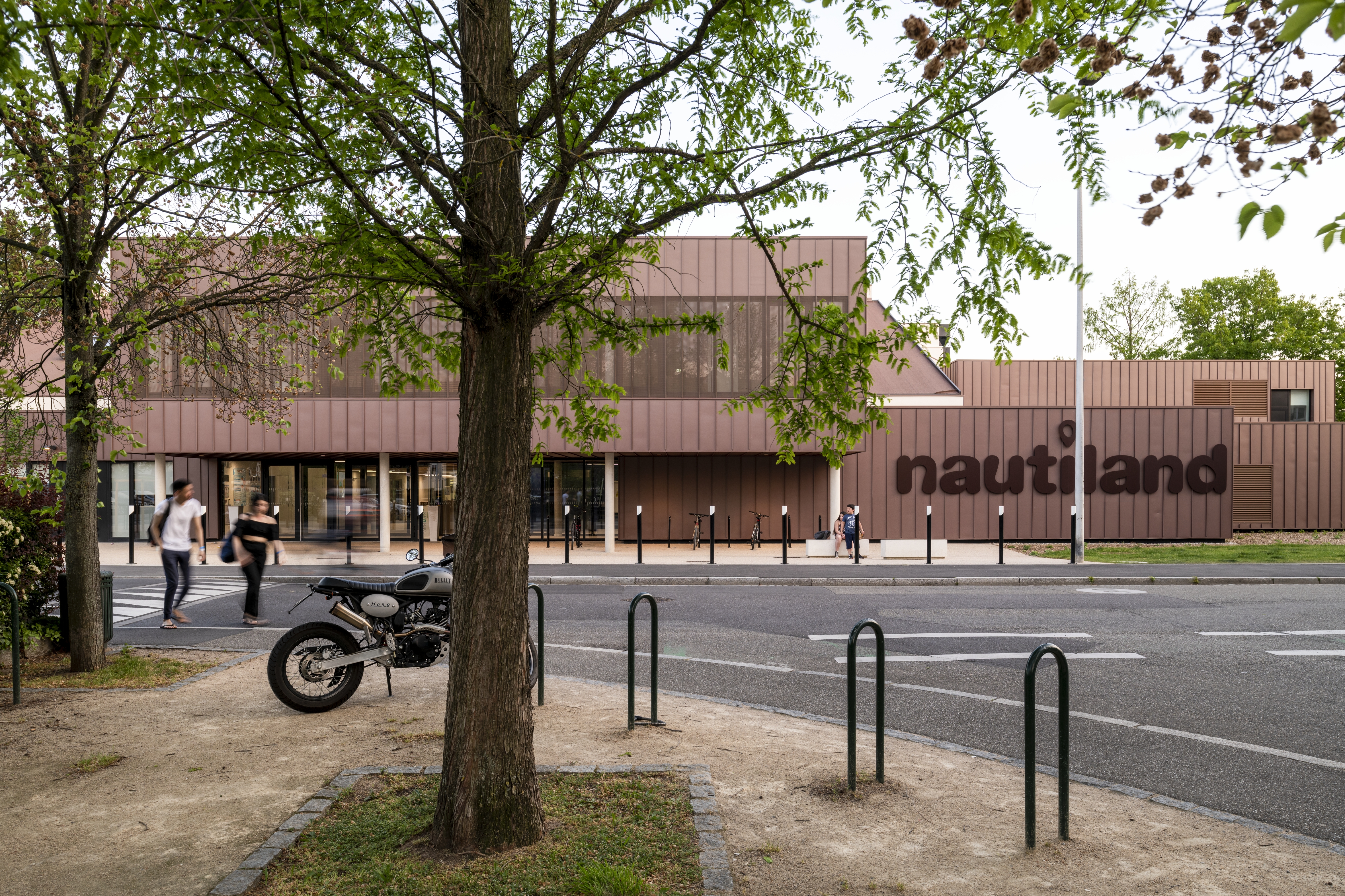 Le volume originel du Nautiland couvert par une toiture à deux pans est toujours lisible. Il est bordé au nord, le long de la rue des Dominicains, par une extension dessinée par Rey et de Crécy, entièrement couverte d’un bardage cuivre. L’entrée du centre aqualudique est soulignée par un volume parallélépipédique accueillant la salle « anniversaires » qui est en encorbellement sur le parvis et propose ainsi une aire abritée. Au rez-de-chaussée, cette extension est dédiée au hall d'accueil central, aux vestiaires collectifs et aux espaces administratifs. L’existant a été peu remanié : le vaste espace des bassins s’ouvre au sud et à l’ouest sur un parc aménagé (solarium, rivière extérieure et aires de jeux, pelouses). Il accueille trois bassins interconnectés : un bassin sportif de 25x15 m relié à un bassin d’apprentissage de la même taille aux formes courbes, lui-même lié à la pataugeoire grâce à la rivière intérieure.
