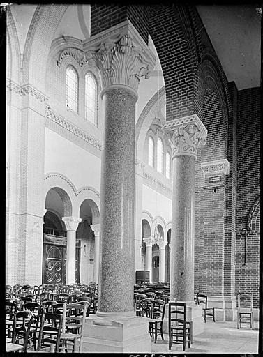 Le projet de reconstruction de l'église paroissiale Sainte-Catherine commence au milieu du XIXe siècle à l'initiative de l'abbé Grenouilleau. Suite à l'effondrement d'une voûte de l'ancienne église en 1897, Georges Leygues demande à l'architecte des Monuments Historiques, Jules Edouard Corroyer, le plan d'une nouvelle église. Il propose une église de style romano-byzantin dont le plan est inspiré des basiliques du haut Moyen-Age. Il est agencé autour d'une nef à bas-côtés auxquels se greffent des chapelles en hémicycle et d'un choeur à chevet polygonal. Le couvrement est constitué d'une série de coupoles recouvertes d'un toit à deux pans. La construction adjugée à l'entreprise Corne et conduite par Lucien Roy, élève de Corroyer, débute en 1898. Après la mort de Corroyer en 1904, Lucien Roy se charge du projet, tandis que Gaston Rapin, architecte de Villeneuve-sur-Lot dirige le chantier. Les travaux sont interrompus pour des raisons financières et reprennent en 1909 grâce à un don de Georges Leygues. Le choeur, au nord, est consacré en 1911. Le projet est augmenté la même année d'un clocher plus élevé, octogonal dans sa partie supérieure, sur le modèle de Saint-Sernin de Toulouse. Une tourelle d'escalier hors-oeuvre s'adjoint à celui-ci. Le porche en narthex est commencé en 1912 et achevé en 1924. L'église est construite en béton armé, recouvert d'un parement de briques, fabriquées à Villeneuve-sur-Lot par l'entreprise Berger. Les voussures du portail, sculptées en pierre blanche, contrastent avec la brique rouge. Ce jeu avec les matériaux se répète dans le fronton au dessus du portail mêlant colonnettes de pierre sombre et supports en pierre blanche qui se détachent sur le mur de brique. Les trois travées de la nef sont rythmées par des baies à trois arcades inspirées des baies thermales. A l'intérieur les colonnes sont traitées en granit poli avec des chapiteaux sculptés par Antoine Bourlange, sur les modèles de Moissac et Toulouse.