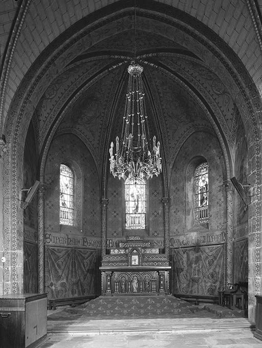 Clocher et chapelles fin 15e siècle, début 16e siècle ; chapelle occidentale construite en 1854, porte la date ; nef voûtée en 1863