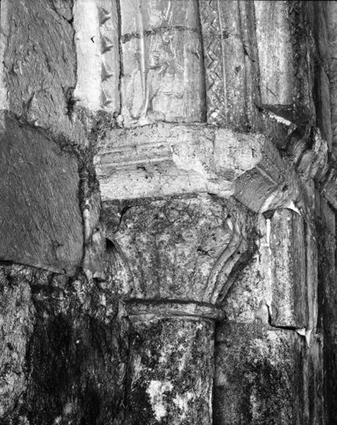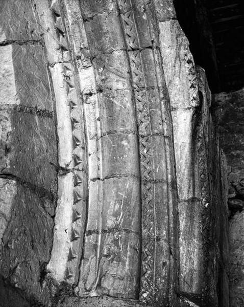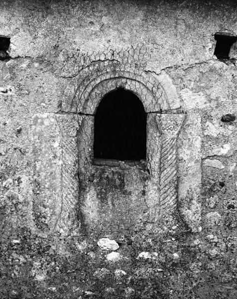 Fondée au haut moyen âge ? Détail baie du choeur et petit appareil du choeur ; reconstruction au 12e siècle : porche ; remaniée au 15e siècle