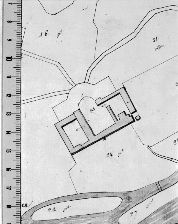 parc ; jardin ; chapelle ; fontaine ; orangerie ; grange ; communs ; colombier ; étable ; fossé