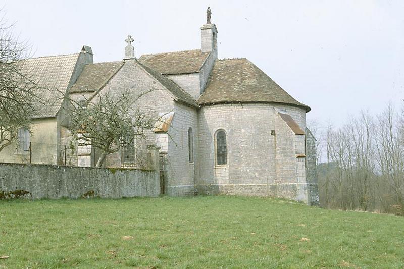 Construit au 12e siècle ; reconstruit presque totalement en 1410 ; à cette époque Thibaud de Rougemont adjoint à la chapelle primitive un transept et un choeur ; Joseph de Grammont entreprend restauration entre 1698 et 1717 ; autre restauration vers 1820, puis entre 1872 et 1875 ; bâtiment annexe du 17e siècle