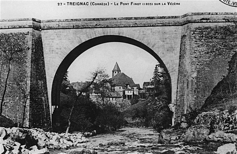 Pont construit en 1822 sous l'administration du baron Finot, préfet de la Corrèze, dans le cadre de grands travaux de voirie, nouvelle route évitant le vieux pont et coupant le trace de l'enceinte de la ville haute