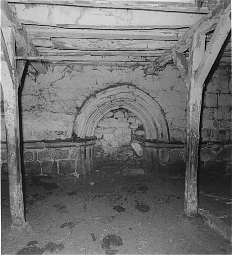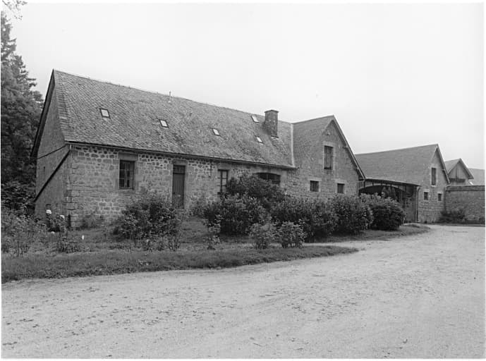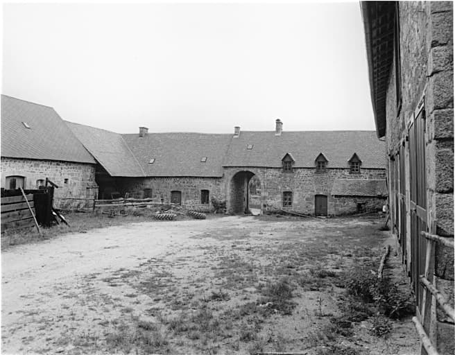 cour ; chapelle ; logement ; étable à vaches ; bergerie ; écurie ; laiterie ; four à pain ; forge ; puits