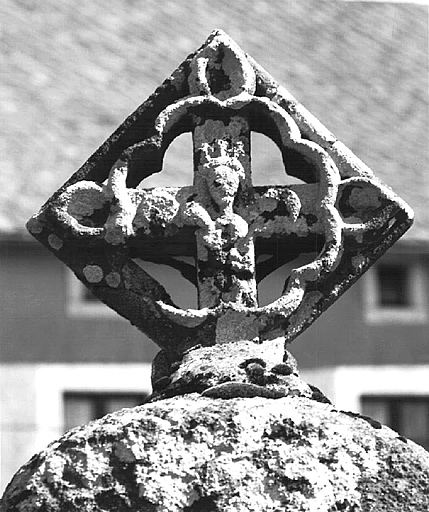 Fontaine porte le millésime : 1891 ; niche couronnée d'un fragment de croix ancienne 16e siècle ?, représentant le Christ en croix et la Vierge à l'Enfant ; niche abritant la statue de saint Jean-Baptiste
