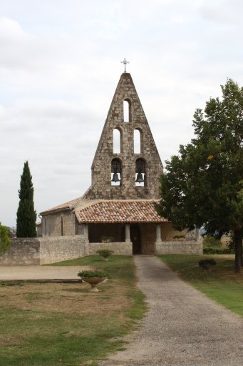 L'église est implantée à l'écart du village, vers l'est. C'est un édifice à nef unique terminé par un chevet plat. La façade occidentale est surmontée d'un clocher-mur. Un porche accolé au clocher protège le portail. Ce portail est décoré d'une ««simple voussure brisée dégagée d'un tore et reposant sur deux bases prismatiques»« (Balagna, 2000, t.4, p.285).