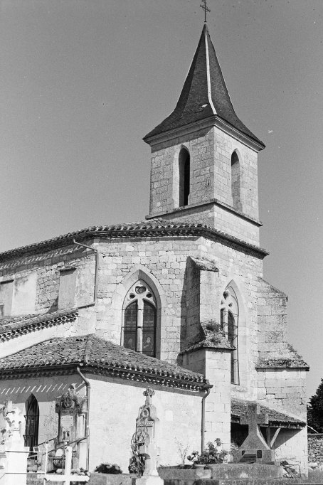 Eglise reconstruite dans la 2e moitié du 15e siècle ? ; clocher et voûtement de la nef reconstruits entre 1857 et 1870, vitraux par Victor Gesta de Toulouse, daté par travaux historiques