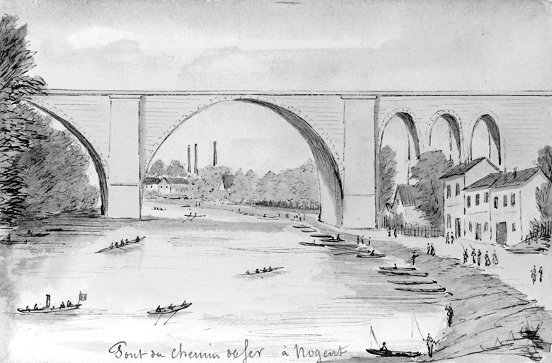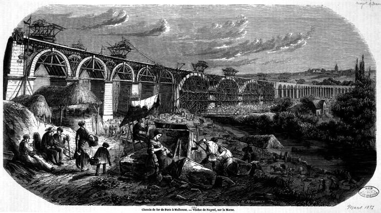 Viaduc de 30 arches construit en 1857 sur les communes de Nogent, le Perreux et Champigny par collet Meygret, Pluyette et Vuignier pour permettre à la ligne de chemin de fer Paris Mulhouse de franchir la Marne ; en 1946, les 4 arches franchissant la Marne sont remplacées par 3 arches de béton