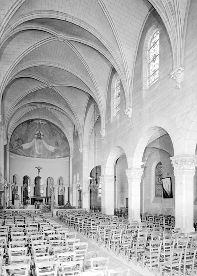 1ère pierre de l'église posée en 1889. Eglise achevée en 1890 d'après plans de l'architecte Louis Alary. Clocher construit en 1899. Chapelles latérales du transept ajoutées en 1930. Fresque du cul-de-four peinte par _Deteix en 1924