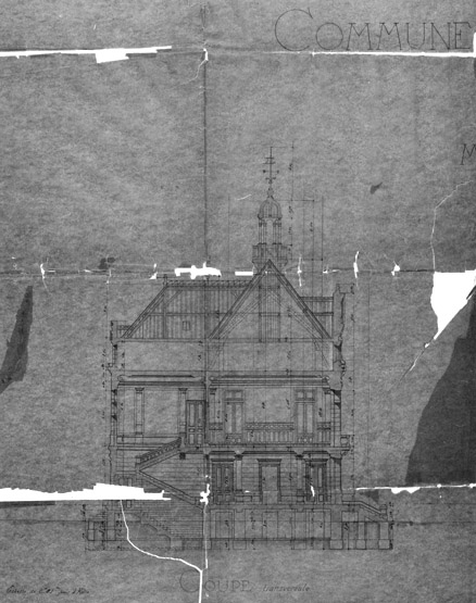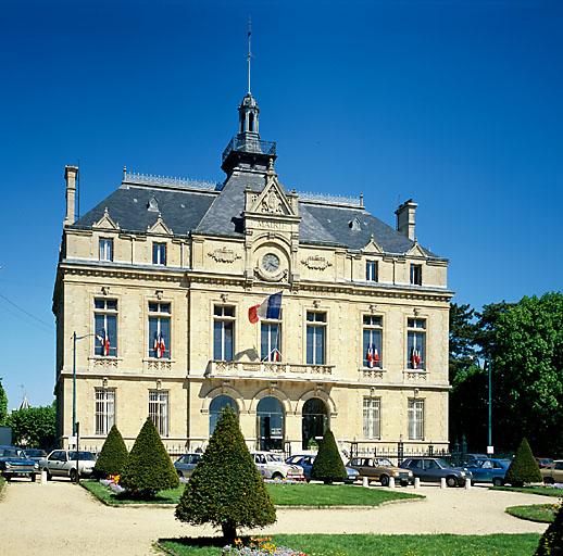 Pour construction de la mairie, concours public ouvert en 1889 : 33 projets présentés. Mairie édifiée en 1890 par Pierre Mathieu, architecte au Perreux, sur l'emplacement de l'ancien marché. Porte la date 1889