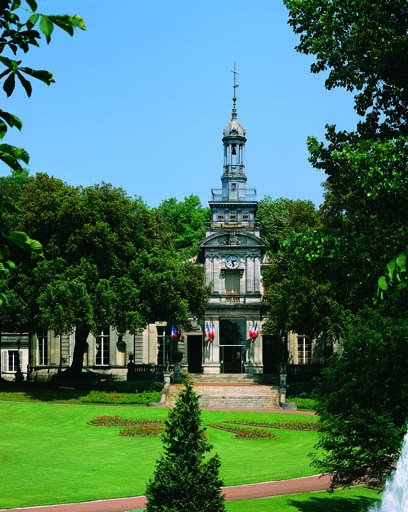 Ancien hôtel Otard de La Grange construit vers 1840. En 1889, la ville l'achète pour y établir l'hôtel de ville. Des travaux sont exécutés en 1890 et 1891 sur projets de l'architecte Philippe Deménieux et de l'architecte Alfred Leroux, de Paris, pour la façade et son campanile. M. Mignot, de Bordeaux, exécute la décoration intérieure, dont la cheminée de la salle du conseil et la bibliothèque installée au 1er étage. L'inauguration a lieu le 10 juillet 1892. Parc transformé en jardin public