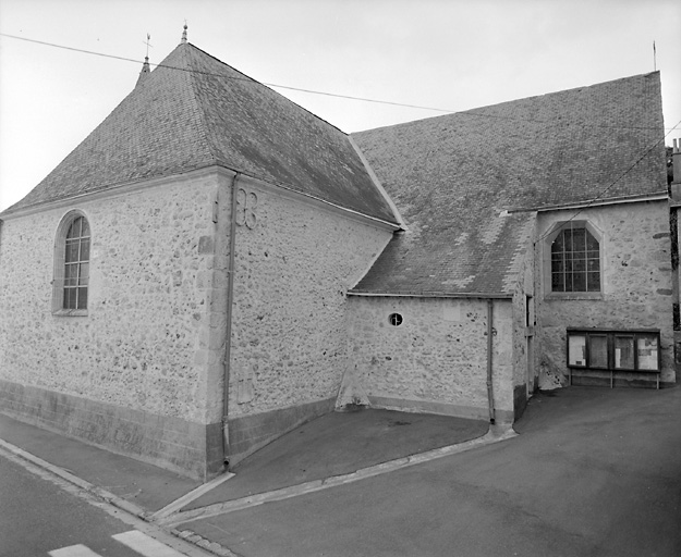 Prieuré fondé à une date indéterminée au moyen âge ; église construite au 12e ou 13e siècle ; peinture du 16e ou 17e siècle ; église remaniée au 17e siècle : ajout de baies, colonnes du transept ; baies du choeur percées au 18e siècle ; lambris de la nef installé à la fin du 18e siècle ou au début du 19e siècle ; bras nord du transept construit par l'architecte Tessier vers 1853, daté par source ; logis construit au 15e ou 16e siècle ; aménagé en école par l'architecte Vivoin vers 1838, daté par source ; partie orientale détruite dans le milieu du 19e siècle ; aménagement en mairie au 20e siècle