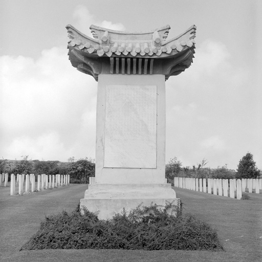 Monument érigé en 1919 par les travailleurs chinois constructeurs de la voie ferrée parallèle Boulogne sur mer Saint-Omer, à la mémoire de leurs confrères morts en service ; inscription commémorative gravée sur l'oeuvre en français, anglais et chinois