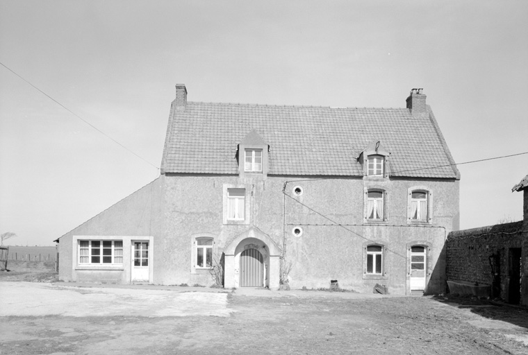 Logis datable 17e siècle. Aile reconstruite au 20e siècle. Manoir construit à l'emplacement d'une ancienne exploitation rurale dépendant de la léproserie de la Madeleine à Boulogne, mentionnée en 1422, et passée avant 1480 à la famille de _Haffrengues. Colombier intact en 1877, en ruine en 1925 et détruit en 1943. Puits détruit fin 19e siècle ou début 20e siècle, d'après source orale. Etable à vaches datée 1759, reconstruite partiellement en 1956 (date sur le bâtiment). Logis couvert en tuile plate, jusqu'au 20e siècle, toiture refaite en tuile flamande